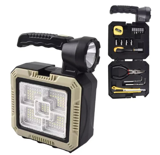 REFLECTOR LINTERNA INFINITA CON PANEL SOLAR + KIT DE HERRAMIENTAS
