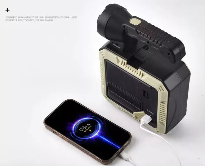 Podras cargar tu celular ante cualquier eventualidad de manera rápida y efectiva, gracias a su carga solar no sera necesario que gastes corriente recargando Nuestro REFLECTOR LINTERNA INFINITA CON PANEL SOLAR + KIT DE HERRAMIENTAS