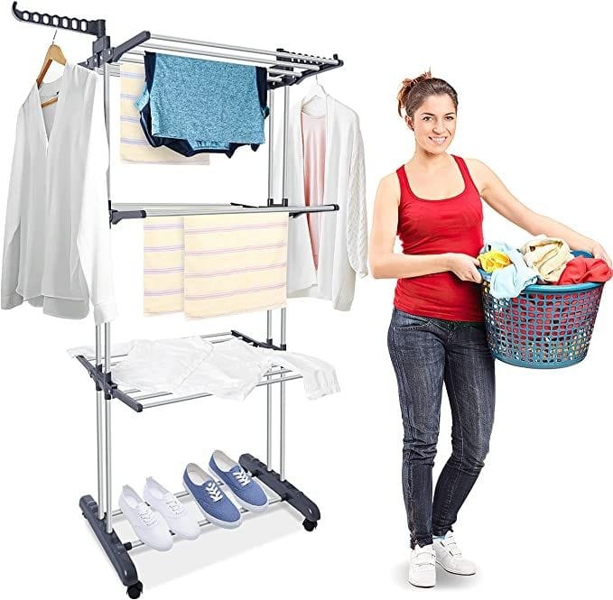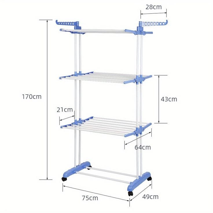Uso Diversificado: Con su diseño elegante y capacidad ajustable, este perchero no solo es ideal para secar ropa, sino que también puede ser utilizado como guardarropa o exhibidor en tiendas.